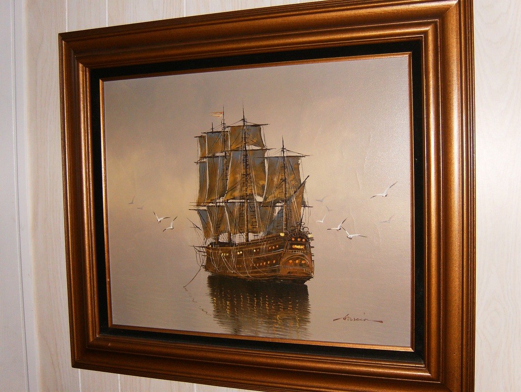 Кроме охотничьих декоративных элементов на стене много картин, как и во все квартире. Больше всего картин с морским пейзажем.