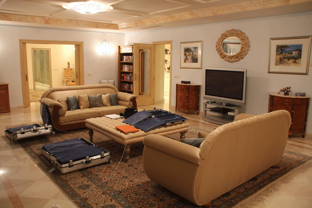 Вид верхней гостиной из угла (из моей с сестрой комнаты, которая будет позже). Видны чемоданы, т.к. мы собираемся в Россию.