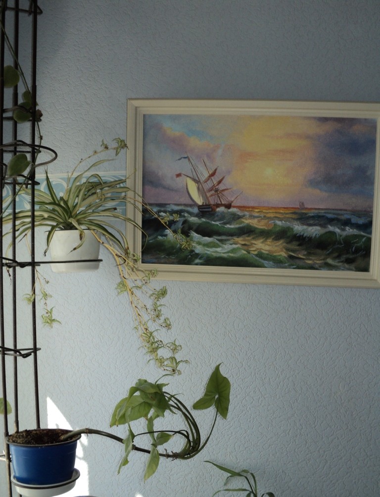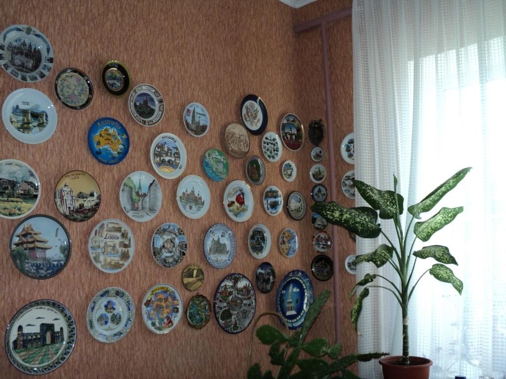Одну из стен мы украсили тарелками с изображением различных стран мира, которые нам привозили друзья со всего света.
