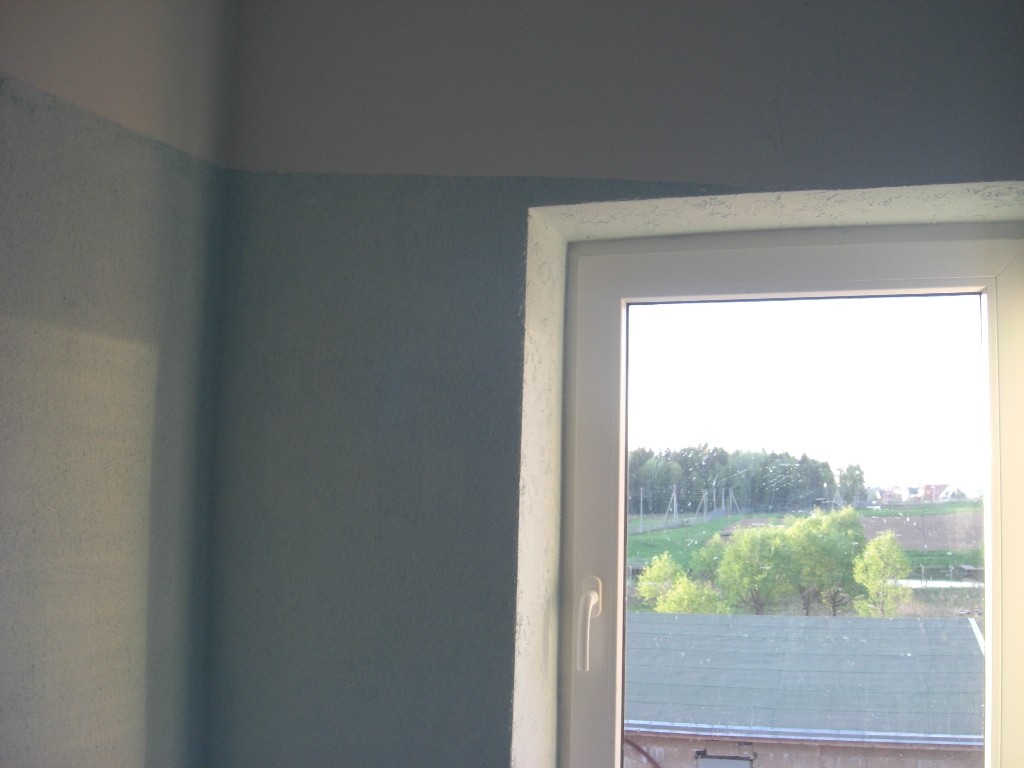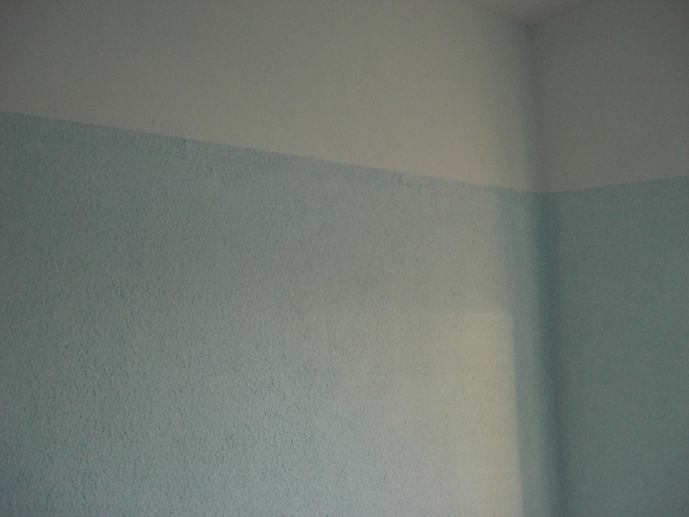 По углам линии продолжили то поднимая их, то опуская, пока не соединили по кругу. Краска наносилась широким и узким шпателями,а рисунок наносился декоративным валиком.