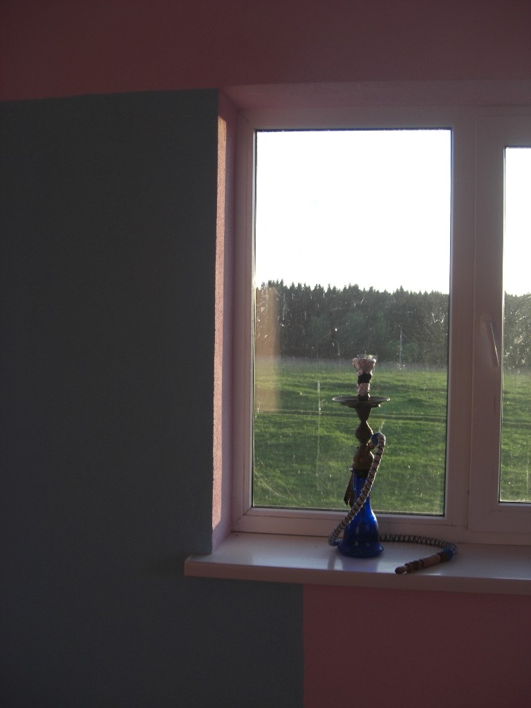 Вернулись в розовую комнату и одну стену и угол перекрасили в голубой цвет. Краска ложилась без каких либо проблем на предыдущий слой. А розовый нигде не проглядывал сквозь голубой.