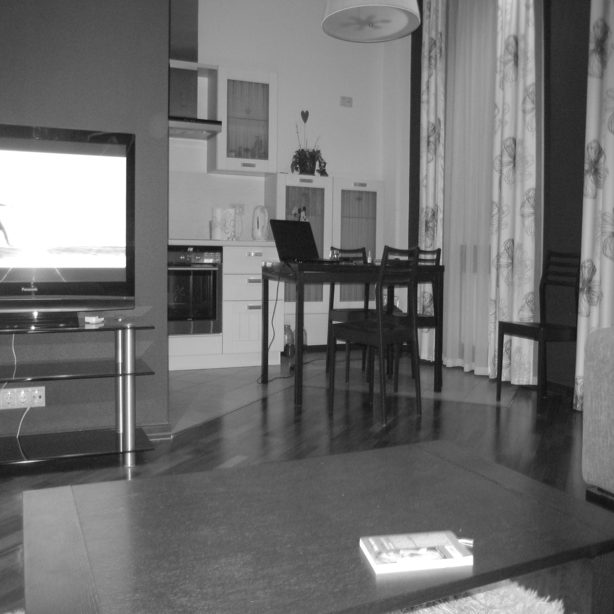черно-белые фотографии добавляют загадочности.мне кажутся, удачно сочеются элементы стиля.высоки потолки.