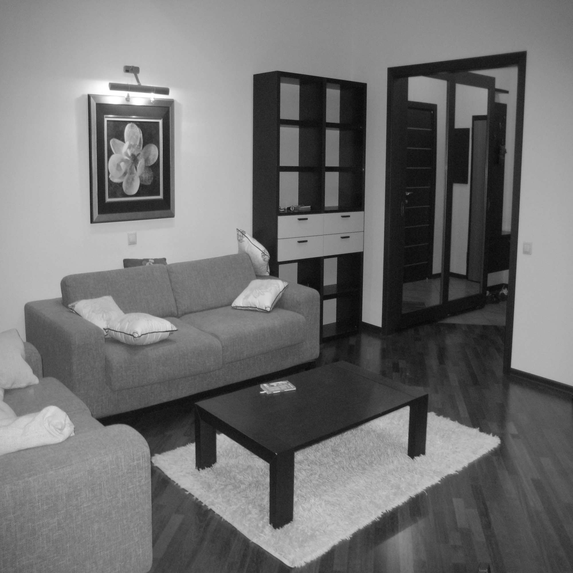 черно-белые фотографии добавляют загадочности.мне кажутся, удачно сочеются элементы стиля.высоки потолки.