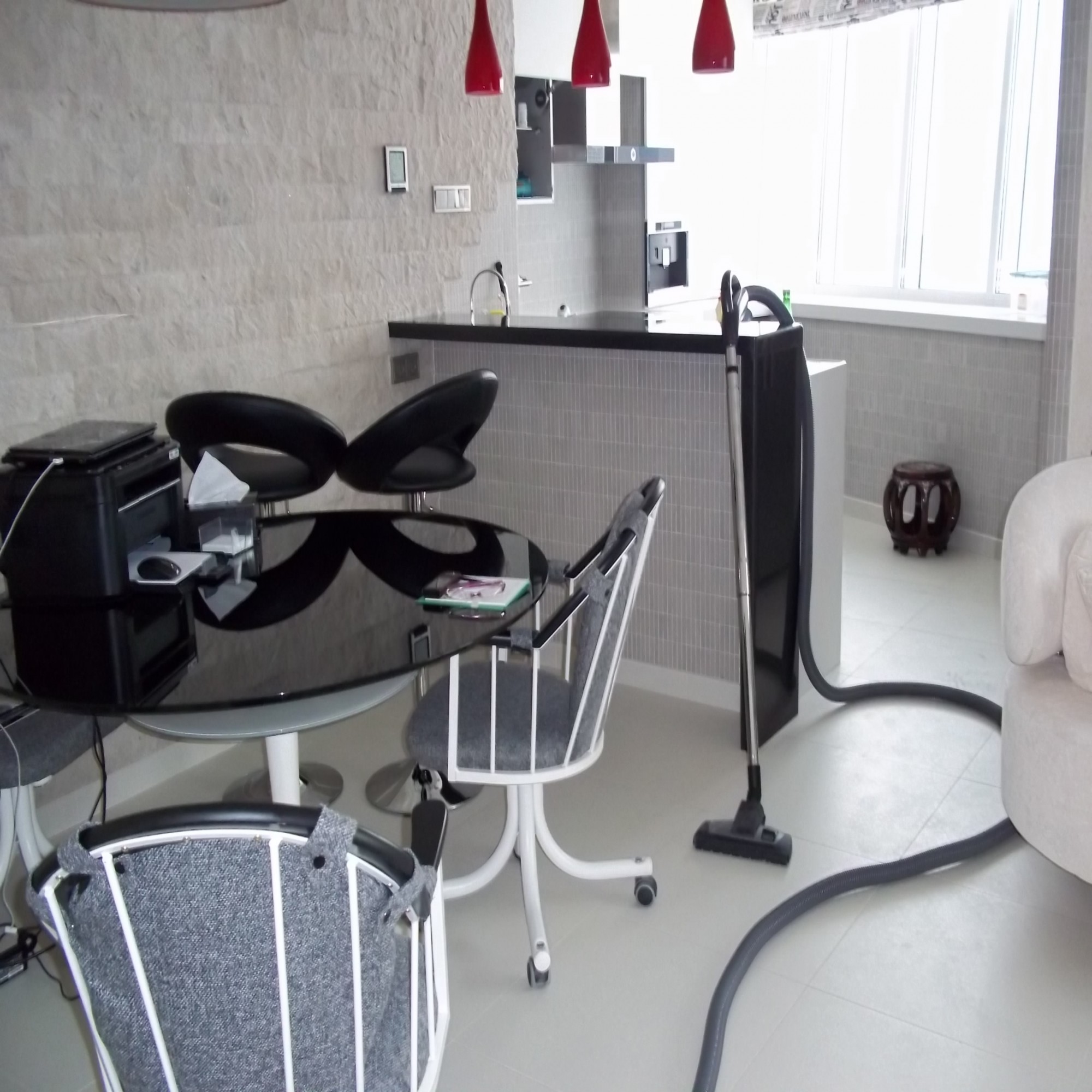 Совмещение гостиной с кухней. Замечательная планировка, совмещающая гостиную, столовую и кухню. Уникальный, встроенный в стену пылесос, со шлангом 10 метров.