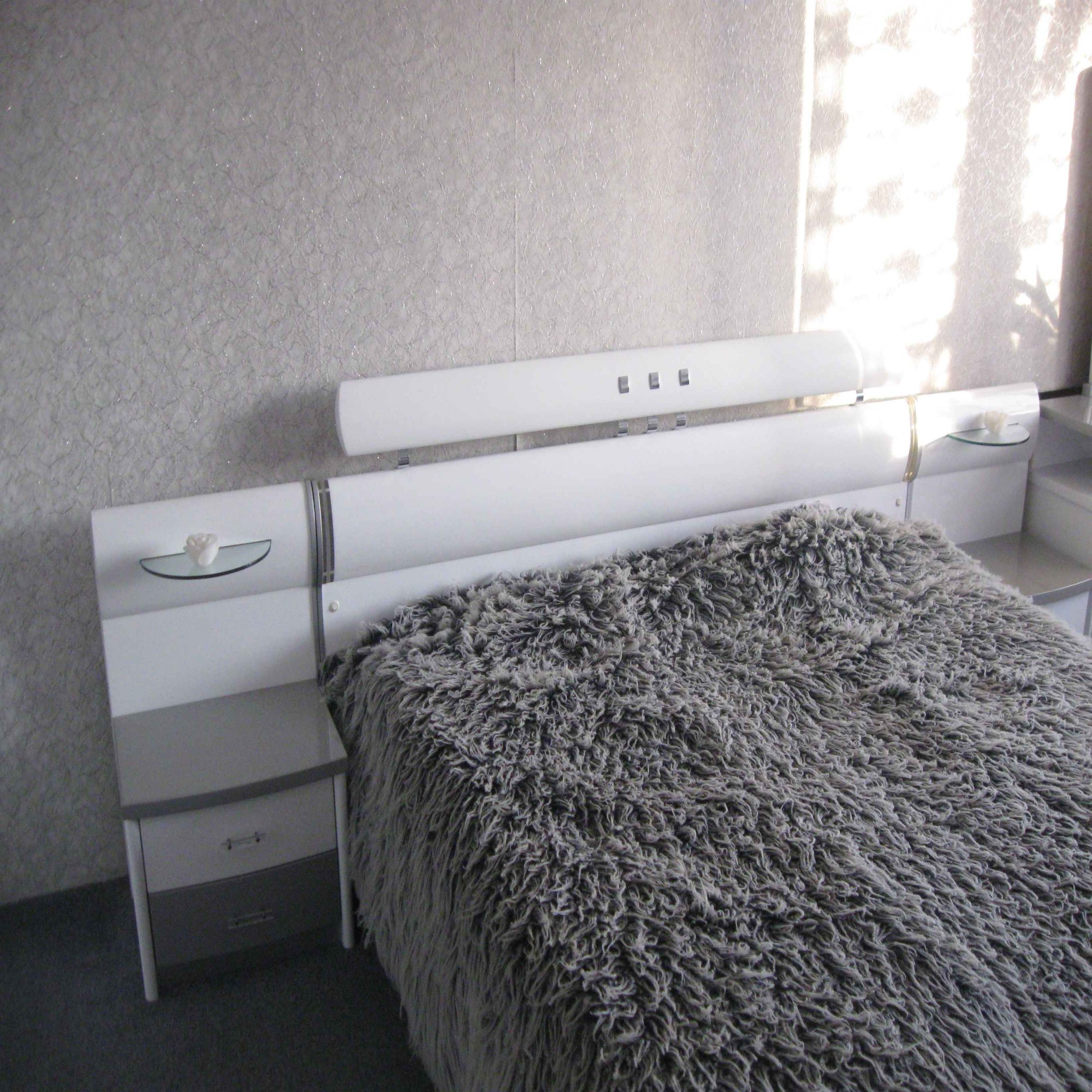 Интерьер фото / Наши интерьеры - квартиры / Спальня / Уютная спальня в серых тонах / Люстра и потолок